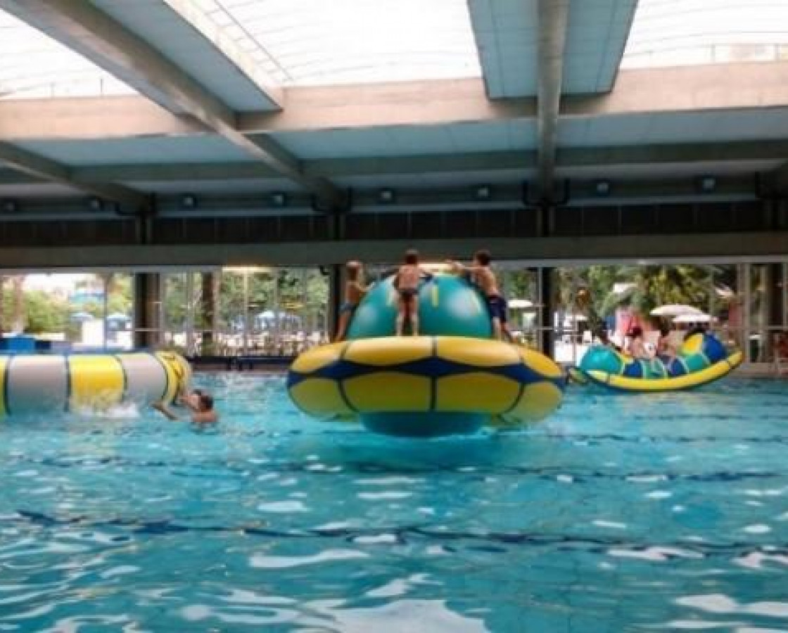 Diversão tripa, Globo giratório aquático, Gangorra aquática e Cama elástica aquática.