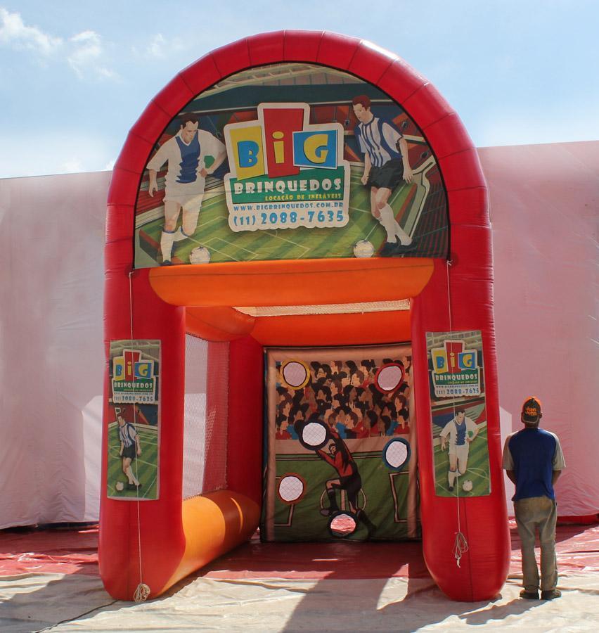 acertar os alvos demarcados e com aberturas no painel do fundo. Briquedo indispensavel para alegria da festa.