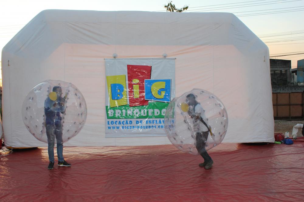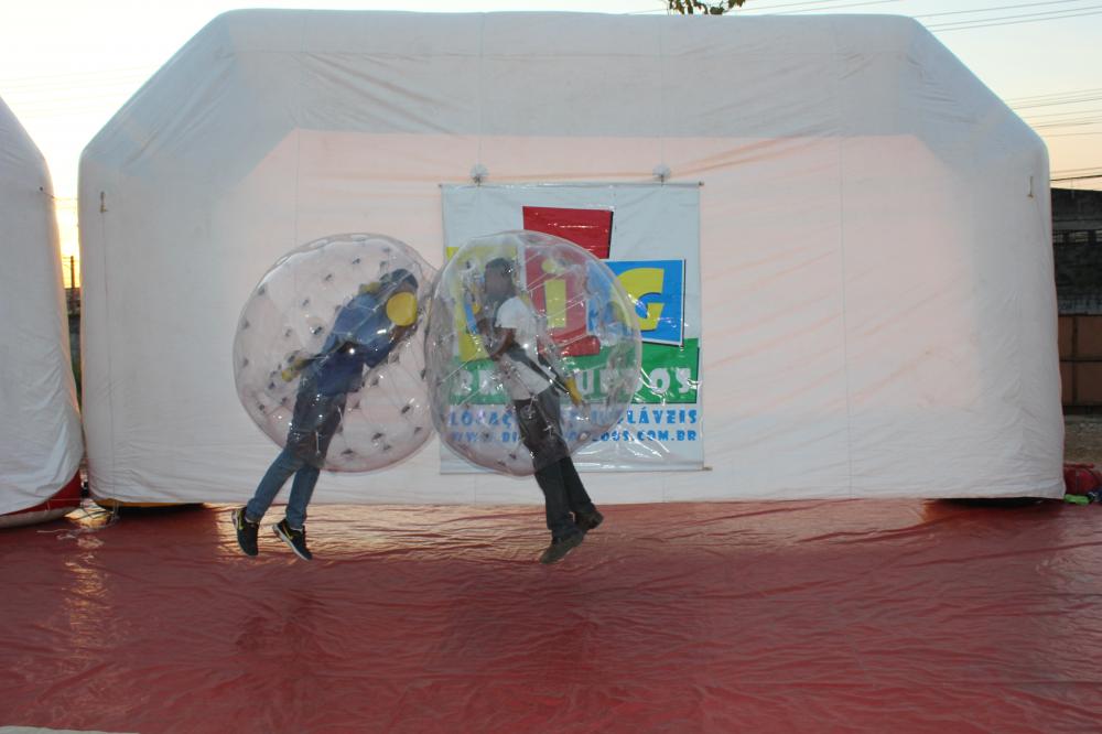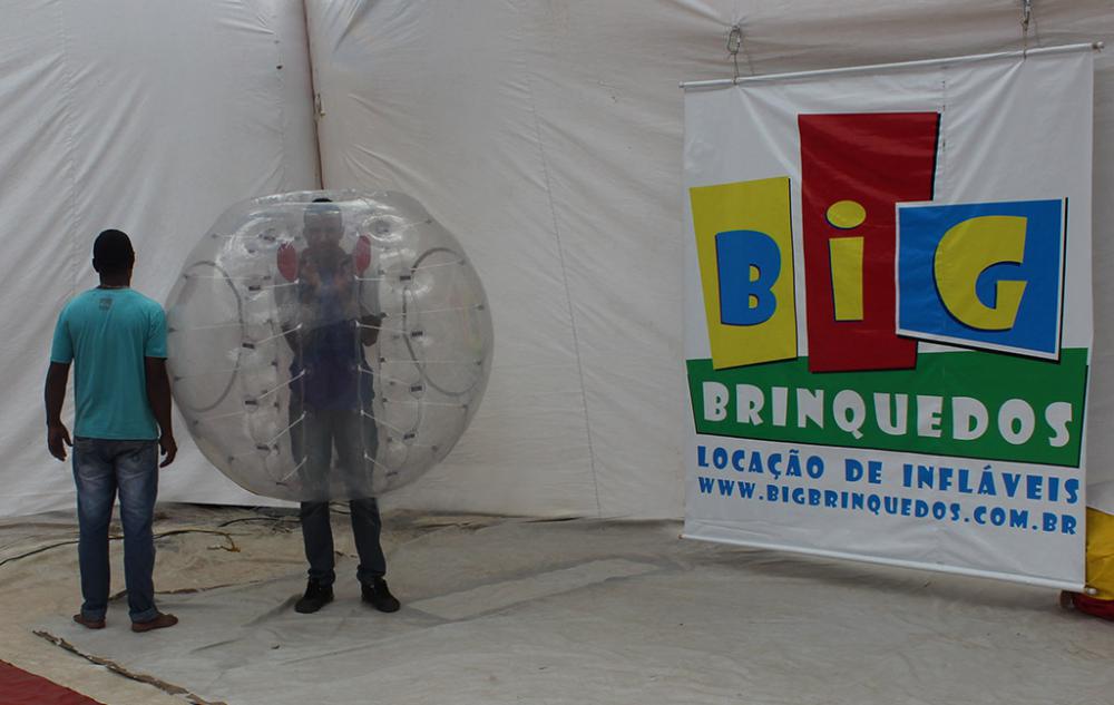 Fight Ball é um brinquedo fantástico pelas sensações que ele proporciona ,consiste em uma bolha de parede dupla com 1m de diâmetro onde a pessoa entra de forma que as pernas ficam livres e o corpo completamente protegido de forma que você pode se jogar no chão ou se chocar com outro participante da brincadeira sem se machucar, a brincadeira fica ainda mais divertida pra jogar futeball