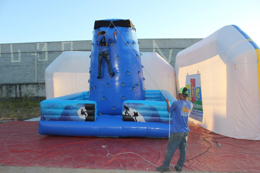 Radicalize com segurança, sinta-se um alpínista de verdade a parede de escalada lança o desafio de chegar ao topo escalando com auxilio de corda e sinto de segurança de alpinismo.