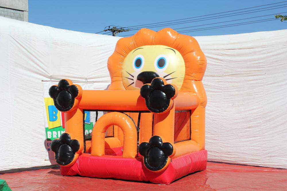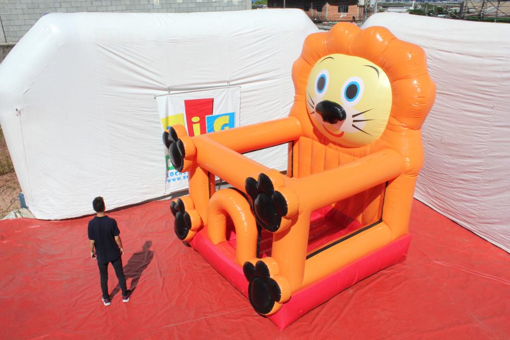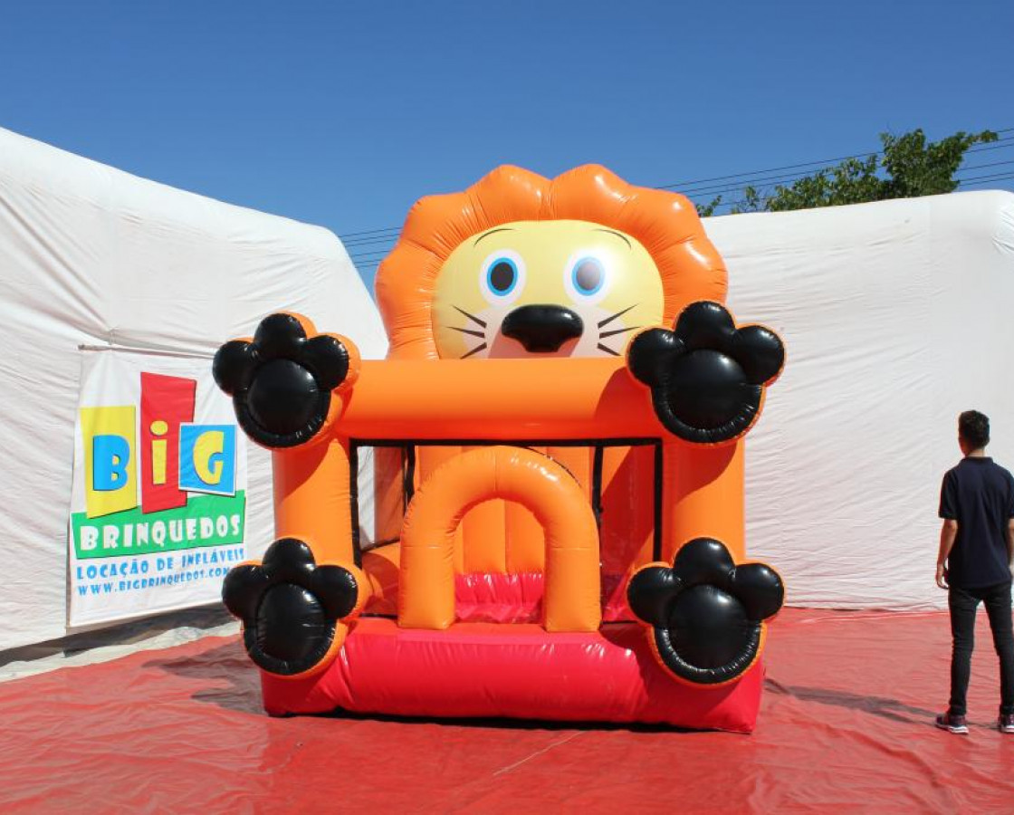 Piscina de bolinha em forma de leãozinho, o formato lúdico da um brilho especial à festa e ainda faz a alegria da garotada que mergulha numa aventura ao pular.