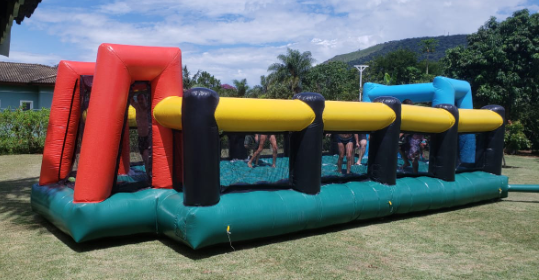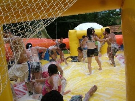 Sensacional brincadeira escorregadia,fazer um gol e muito mais é muito mais desafiante em uma superficie completamente escorregadia,escorregões tombos e gargalhadas com a segurança de um colchão inflável tornam o seu evento inesquecível.
